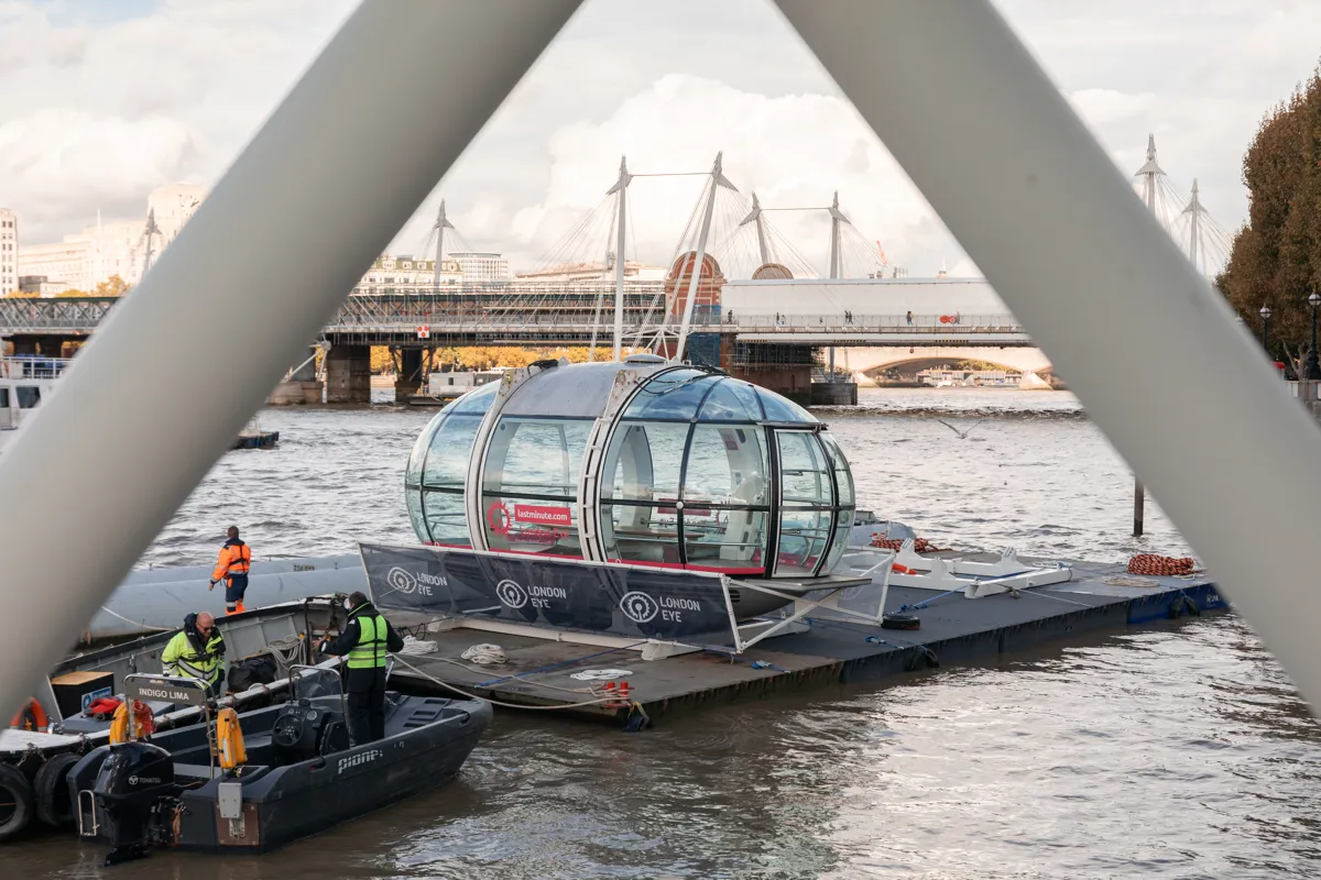 The London Eye, standing 135 metres tall on the South Bank of the River Thames, is one of the most recognisable features of the London skyline. To mark 25 years of operation, the attraction is undergoing a comprehensive refurbishment — including the removal and upgrade of all 32 of its passenger capsules.